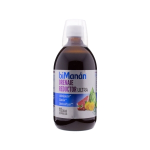 biManán Drenaje Reductor Ultra 500ml es un complemento nutricional elaborado a base de extractos concentrados de 8 plantas y zumos de frutas, tradicionalmente utilizados por sus propiedades depurativas y para remodelar la silueta de modo natural. Contribuye a eliminar el exceso de líquidos y evitar su retención gracias a la cola de caballo, la zarzaparrilla y la ortiga. Asimismo, ayuda a depurar las toxinas gracias a la alcachofa, el boldo, el diente de león y el anís verde. Por su parte, el fucus proporciona un efecto saciante.