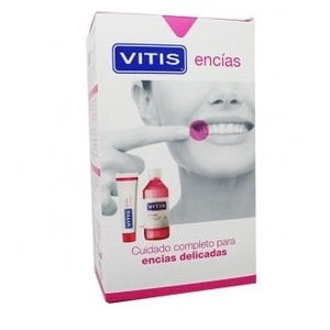 No pierdas la oportunidad de darle a tu sonrisa toda la salud que se merece y aprovecha los beneficios del pack de limpieza bucal de Vitis Encías, que incluye en su oferta higiénica un potente colutorio 500ml+dentífrico 100ml, muy eficaces para prevenir la inflamación o el sangrado de encías. Entre los beneficios que te aportan el colutorio y el dentífrico, se encuentran: El pantenol disminuye la inflamación y revitaliza el aspecto de tus encías. El permethol reduce el sangrado y la sensibilidad gingival, aportando fortaleza a la zona de la encía para que no se inflame con facilidad. El cloruro de cetilpiridinio, un excelente antiséptico, reduce la formación de placa bacteriana y evita que se acumule. El lactato de zinc inhibe el sangrado gingival y ayuda a potenciar los efectos antisépticos. Un pack ideal para las personas que sufren inflamación o sangrado de encías.