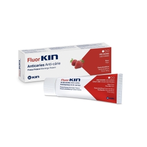 La pasta dentífrica Fluor-Kin pasta dental fresa ofrece una acción anti-caries y anti-placa que cuida y protege tus dientes durante su higiene diaria. Además, el flúor presente en su formulación mejora la protección bacteriana de dientes y encías, evitando que la placa afecte al esmalte.