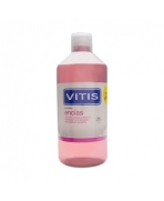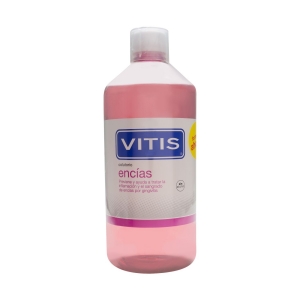 Vitis encías colutorio 1l es un enjuague bucal que controla la gingivitis y disminuye sus nocivos efectos de inflamación. Utiliza colutorio Vitis Encías para mantener la máxima higiene de tu boca sin olvidar el cuidado que su sensibilidad necesita. Contiene una fórmula enriquecida con elementos antisépticos y antiinflamatorios que reducen progresivamente las heridas de la cavidad bucal. Además de favorecer la higiene de nuestros dientes, es ideal para aquellas personas que presentan molestias y traumatismos en los tejidos blandos de la cavidad bucal. Estos son lo principales ingredientes de Vitis encías colutorio 1l: Cloruro de cetilpiridino, previene la formación y la acumulación de la placa bacteriana y controla al mismo tiempo el desarrollo de la gingivitis. Lactato de zinc, que reduce la rojez y el sangrado gingival y mejora el poder antiséptico del Cloruro. Permethol, para disminuir la sensibilidad de las encías y fortalecer su resistencia ante los procesos de inflamación. Pantenol, una provitamina B5 que protege y revitaliza las encías. ¡Benefíciate ahora de todas las propiedades desinfectantes de este enjuague bucal!
