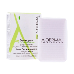 La pastilla A-Derma Dermopan está especialmente diseñada para limpiar y reparar las pieles secas, sensibles e irritadas. Este producto proporciona suavidad a diario, sin jabón y 100% natural. A-Derma Dermopan proporcionA los siguientes beneficios: Respeta y mantiene el equilibrio del film hidrolipídico. Hidrata, alivia y suaviza las pieles irritadas y reactivas. Es un jabón sin jabón que respeta el pH cutáneo. Su fórmula se ha elaborado sin jabón, sin perfume, sin alcohol, sin conservantes. Su fórmula contiene los siguientes componentes: Leche de Avena Rhealba, que alivia y suaviza la piel. Agentes sobreengrasantes que evitan la sequedad y calma la piel. Base lavante suave (pH=5.5) que permite limpiar la piel sin dañarla. ¡Limpia y repara las pieles secas, sensibles e irritadas!