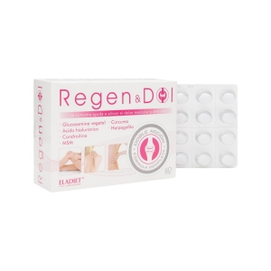 Con el paso de los años, nuestras articulaciones se van desgastando progresivamente y pueden llegar a ocasionarnos dolores agudos y continuados. Para mantener una buena salud articular, te puede ser de gran ayuda añadir a tu dieta un complemento rico en sustancias que nutran y refuerzan las articulaciones. Regen&Dol de Eladiet es un producto rico en componentes que se encuentran de forma natural en la matriz del cartílago articular, como la glucosamina, la condroitina o el ácido hialurónico. Estos ingredientes te ayudarán a disminuir la inflamación localizada en las articulaciones y a reforzar su estructura interna. Los principales beneficios de este producto son: Refuerza la estructura articular gracias a la glucosamina y la condroitina. Ejerce una acción antiinflamatoria sobre el aparato locomotor por la acción del harpagofito. La cúrcuma actúa como otro agente modulador de la respuesta inflamatoria. Recupera las células y el tejido dañado. Su riqueza en ácido hialurónico favorece el líquido sinovial. Mantén tus caderas y rodillas en perfecto estado.