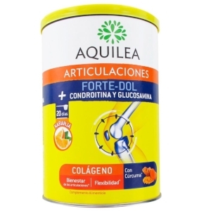 Aquilea Articulaciones Forte-dol 300g es un complemento alimenticio ideal para aquellas personas que quieran disminuir las molestias ocasionadas por el desgaste de las articulaciones, mantener su flexibilidad y bienestar. Su fórmula, que contiene un gran aporte de colágeno, glucosamina y condroitina e ingredientes naturales como la cúrcuma contribuye a regenerar las articulaciones y mejorar la flexibilidad y movilidad. Esta combinación ayuda a mantener la buena movilidad de los ligamientos y potencia su flexibilidad, aportando un extra de sustancias imprescindibles para el fortalecimiento de los cartílagos, ligamientos y tendones.