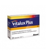 Vitalux Plus 28cáps es un complemento alimenticio con vitamina C y vitamina E y minerales como el cobre y el zinc. Contribuye a la protección de las células frente al estrés oxidativo y a mantener la salud ocular. Caja de 28 cápsulas, también disponible en formato de 84 cápsulas.
