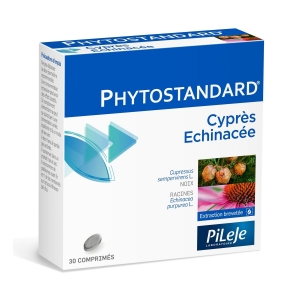 Phytostandard Cipres-equina es un complemento alimenticio que contribuye a la estimulación del sistema inmune gracias a su fórmula con extracto de nuez de ciprés (estimulante de las defensas naturales del cuerpo) y equinácea (ayuda a prevenir las infecciones virales y de repetición).