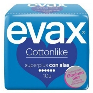 Las compresas Cottonlike Superplus con alas de Evax se adaptan a las mujeres que poseen un flujo intenso en cada período, por lo que requieren una mayor protección. Formulada con perlas activan que captan y eliminan el olor te proporcionará toda la protección que necesitas.