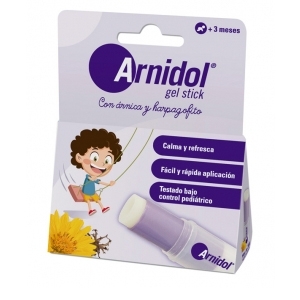 Arnidol® gel stick es un tratamiento que actúa proporcionando un efecto calmante sobre la piel, aliviando los golpes, morados y chichones de los pequeños. Con una acción inmediata, deja una sensación de frescor que ayuda a calmar el dolor de los golpes. Contiene árnica que es una planta que mide entre 15 y 60cm, cuyas propiedades naturales ayudan a suavizar, hidratar y producir un efecto calmante sobre la zona herida y harpagofito: planta sudafricana cuya raíz proporciona una sensación de bienestar y confort.