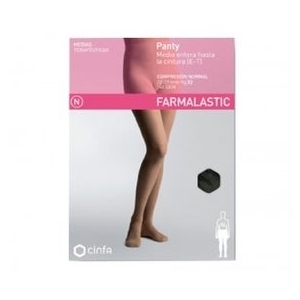 La pesadez y la sensación de dolor en las piernas suele ser una queja muy común después de una larga jornada laboral, largos viajes y de empleos en los que hay que estar mucho tiempo sentados. Todo esto se agrava si sufrimos de varices, provocadas no solo por una vida sedentaria sino también por una mala alimentación. Farmalastic panty-media hasta la cintura (E-T) es ideal para aquellas personas con problemas circulatorios, varices, hinchazón o que por su trabajo permanecen de pie largos periodos de tiempo. Ofrece una acción relajante frente a la sensación de fatiga y dolor en las piernas, así como problemas de varices. Se trata de un panty de compresión hasta la cintura. ¡Da un respiro a tus piernas con Farmalastic! *La T-reina tiene aproximadamente un contorno de pantorrilla de 39-41 cm y de tobillo 24-25 cm.*Por motivos de higiene, no se aceptarán cambios ni devoluciones de este producto.