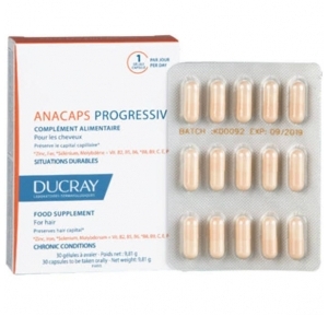 Ducray Anacaps Progressiv 30 Caps es un complemento alimenticio en forma de cápsulas que actúa frente la caída del cabello en caso de caída crónica. Conserva el capital capilar y ayuda a mantener un cabello con buena salud a lo largo del tiempo. ¡Prueba Ducray Anacaps Progressiv 30 Caps!